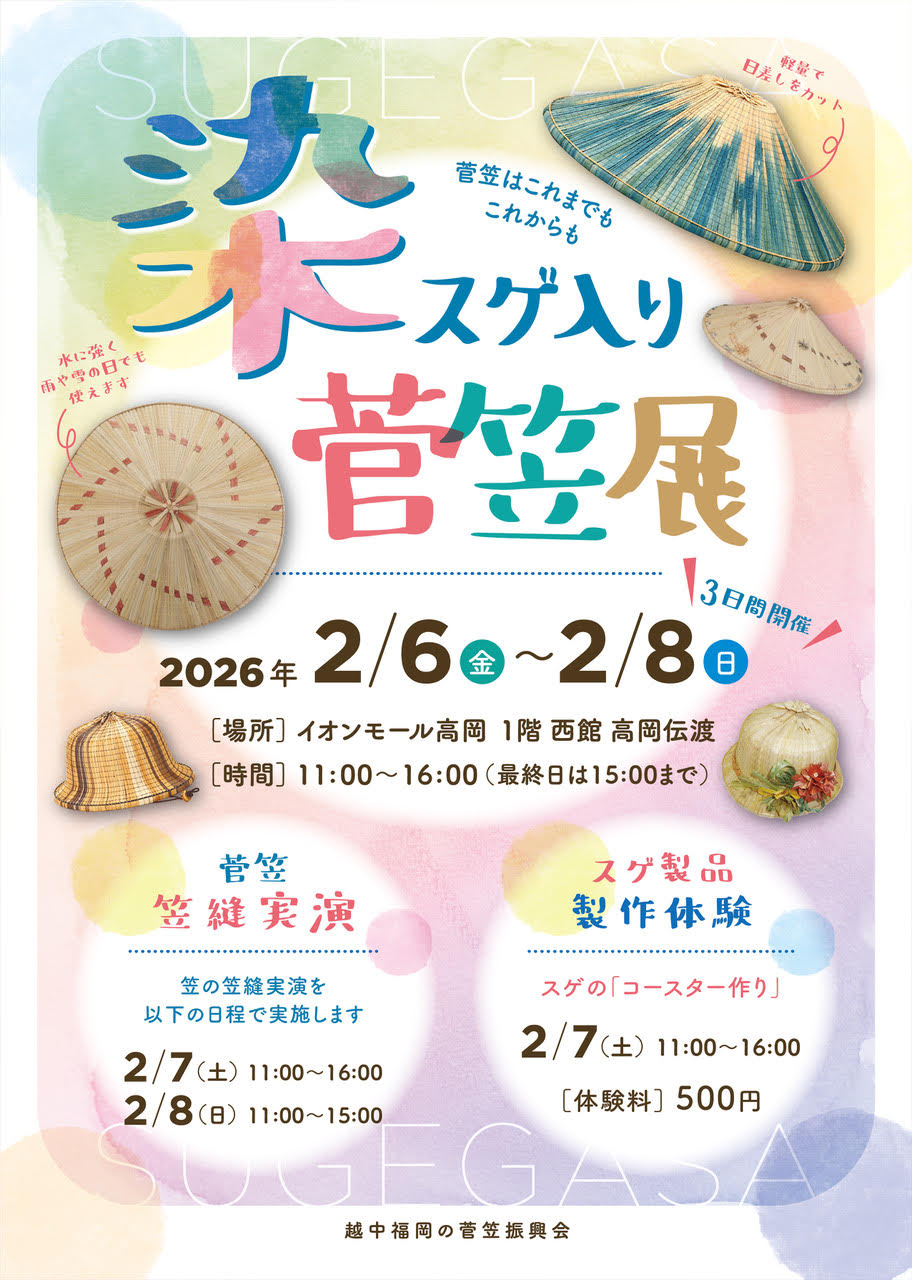 高岡伝渡では、菅笠新作展示会を開催いたします!